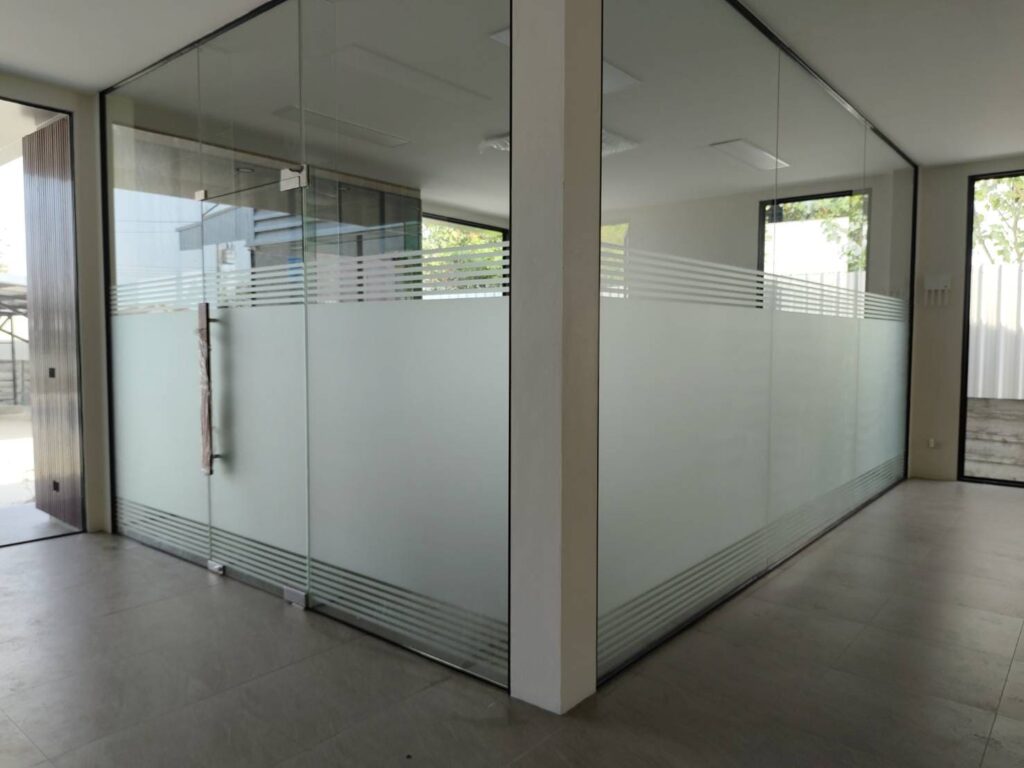 หากออฟฟิศของคุณต้องการเน้นความเรียบง่าย แต่ยังอยากได้กระจกที่มีความเป็นฝ้าชัดเจน ลองพิจารณา ฟิล์มฝ้าขาวขุ่นราคา ที่มักไม่สูงมาก เหมาะกับผู้ประกอบการที่ต้องการประหยัดงบและยังมั่นใจได้ในคุณภาพ รวมไปถึง สติ๊กเกอร์ฝ้าไดคัท ที่สามารถปรับแต่งลวดลายบางส่วนเพิ่มเติมได้